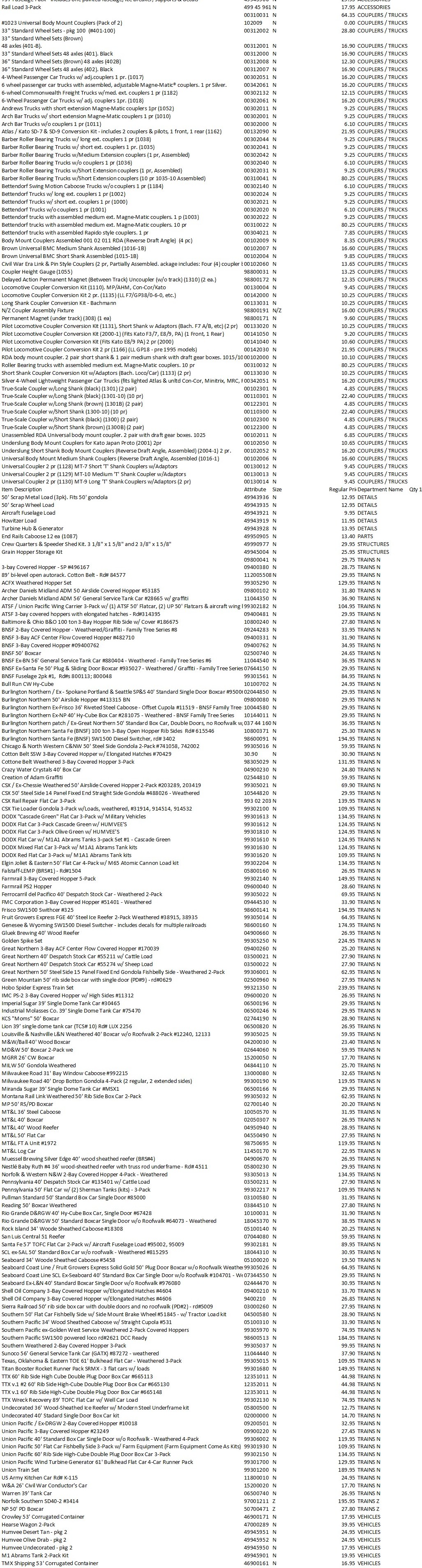 owned/vintage N scale. A listing of what we have in